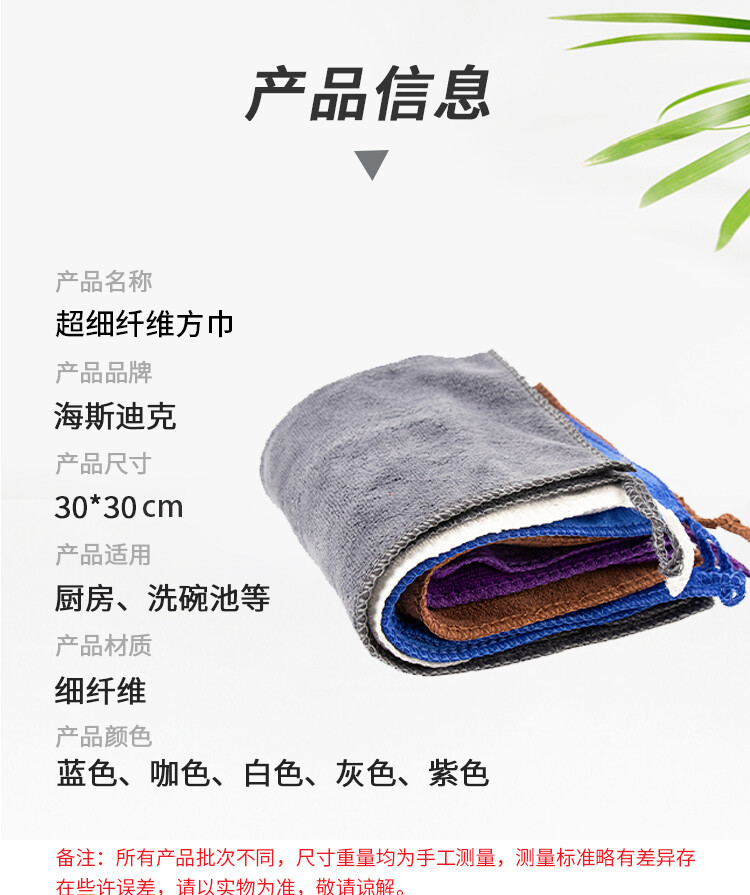 商品標(biāo)題:海斯迪克 HKY-190 超細(xì)纖維方巾 擦車毛巾 柔軟吸水抹手巾 咖啡色10條/包(單位:包)